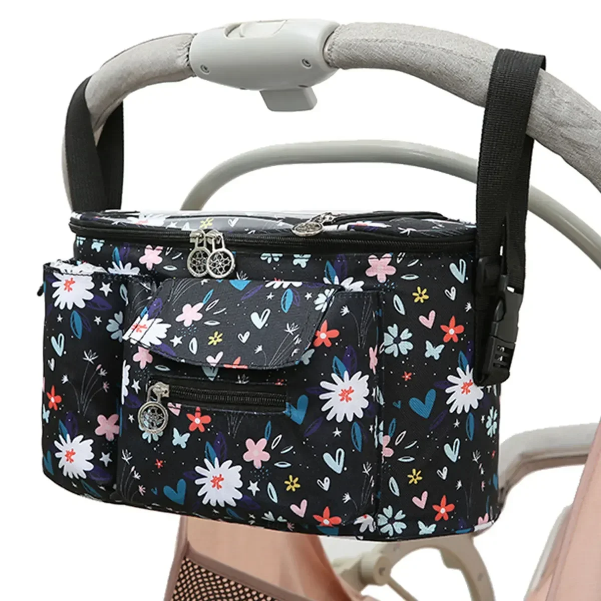 Stroller Organizer Large Capacity Baby Pram Buggy Storage Bag Multi Compartment Pushchair Organizer Mummy Shoulder Bag with